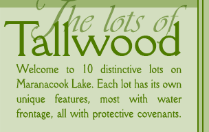 220 feet water frontage Lot will have access via 268 feet of road frontage on the new Tallwood Drive which is a private road. |